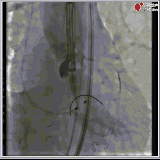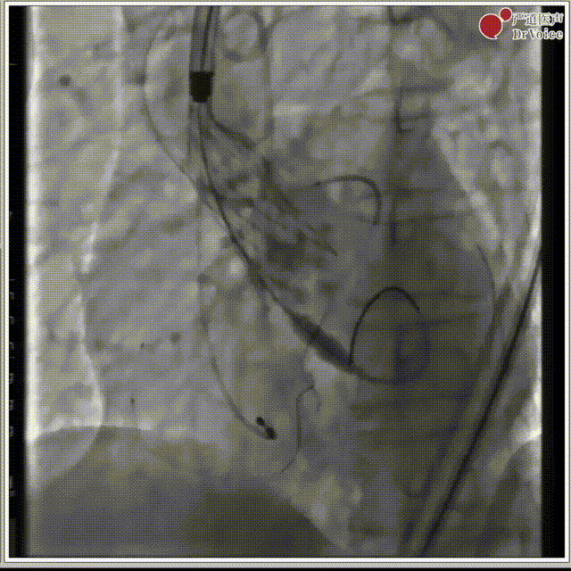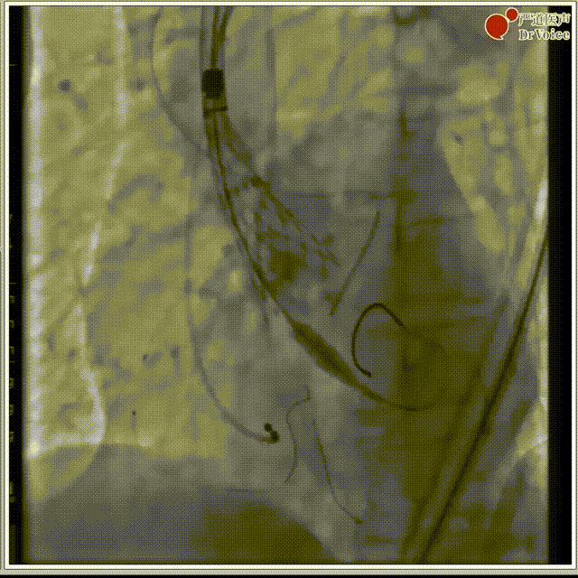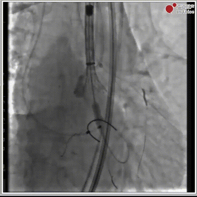 7. 复查造影,左冠有遮挡风险,遂行“烟囱支架”。
