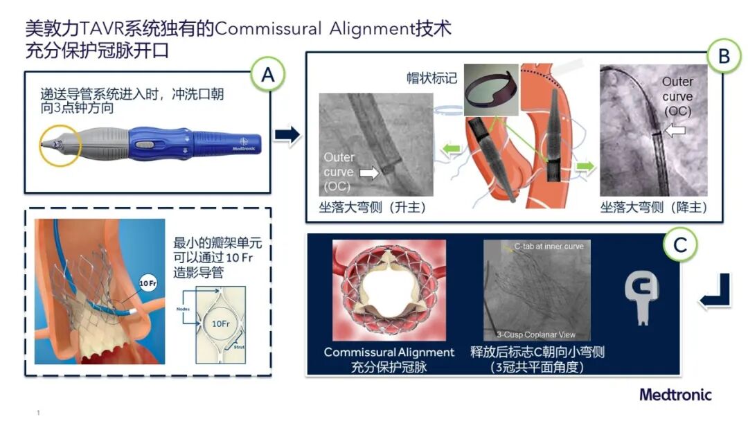 张新金教授:“该患者存在很大的解剖挑战及难点:1. 左窦瓣叶非常长,右窦直径又偏小,两侧冠脉都存在极高的闭塞风险。这要求释放的深度精准,可回收性能良好,有调整的机会,另外双侧冠脉保护使得手术操作涉及到5根入路的操作,这对团队的配合也是一个考验;2. 该患者主动脉弓弓角弓距不是很理想,要求系统具有非常好的通过性;3.患者为瘦小老太太,平均血管入路最小为6mm,这需要系统外径越小越好。根据术中整体体验以及术后整体结果来看,Evolut PRO都表现出色:多次可回收,独有的Commissural Alignment,优异的通过性,最小外径可通过5.5mm血管的内联鞘设计都是该手术成功的重要因素。”