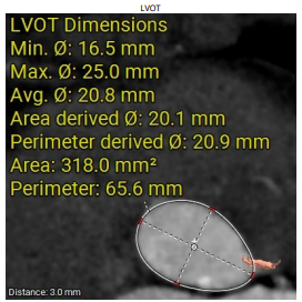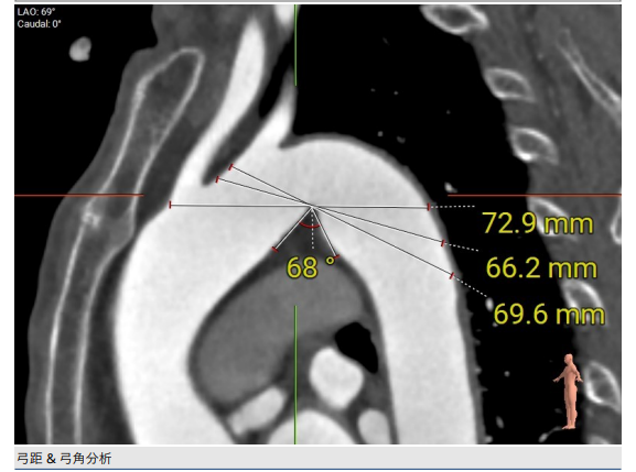 3.主动脉弓分析及瓣叶长度(最短弓距小于70mm)。