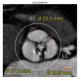 2.主动脉瓣根部(左右瓣叶长度均超过冠脉高度)。