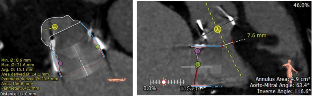患者为74岁女性,NYHA心功分级III级,STS评分极高危17.206%,主诉“腹水半年”入院,合并重度三尖瓣反流、胸腔积液、II型糖尿病、乙肝。既往行二尖瓣置换术(爱德华,型号 27# 6900 Perimount)伴三尖瓣成型术,曾行主动脉瓣置换术。