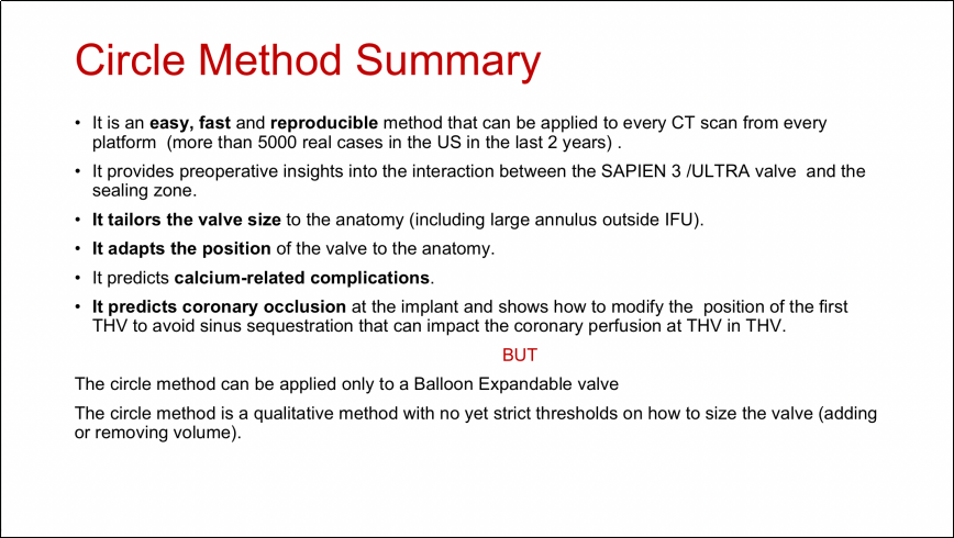 最后,Bo Juel Kjeldsen教授总结道,借助CT扫描采用Circle方法指导瓣膜型号的选择通常是快速有效的,不仅能够指导瓣膜大小和植入位置,同时还能够预测钙化相关并发症以及冠脉阻塞的风险,但这种方法仅适用于球扩瓣膜,而且在运用时,尤其是当所得结果介于两个型号中间时,还需要结合考虑其它因素。