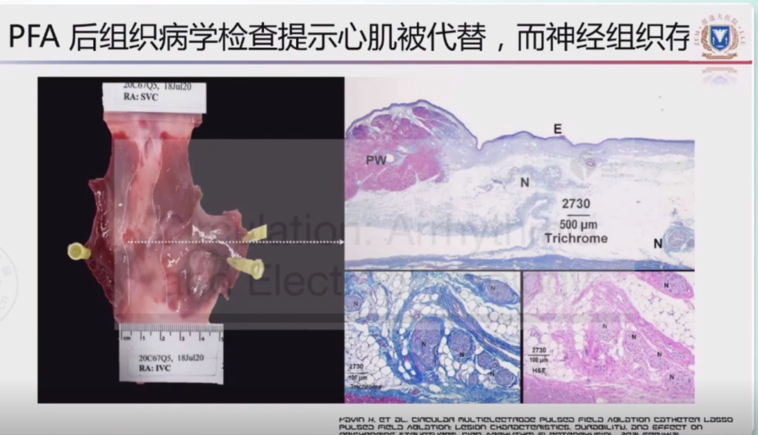 PFA是一种非热源性的消融能源,引起的细胞死亡非热相关性,而是通过干扰细胞膜完整性和细胞内环境实现的,并且PFA作用后的细胞死亡后数天至数周会被纤维组织代替,但其内神经纤维结构仍然保持完整,表示PFA能有效避免消融所致的神经损伤并发症。