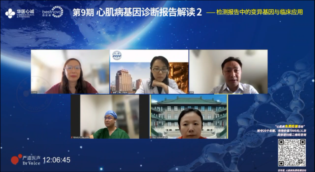 日前,第9期直播由首都医科大学附属北京安贞医院刘宇扬主任主持,并邀请到北京协和医院田庄教授、上海交通大学医学院附属仁济医院姜萌教授、北京大学第一医院心内科专家马为主任、百世诺(北京)医学检验实验室首席医学官侯青博士围绕“心肌病基因诊断报告解读(二)”展开研讨。