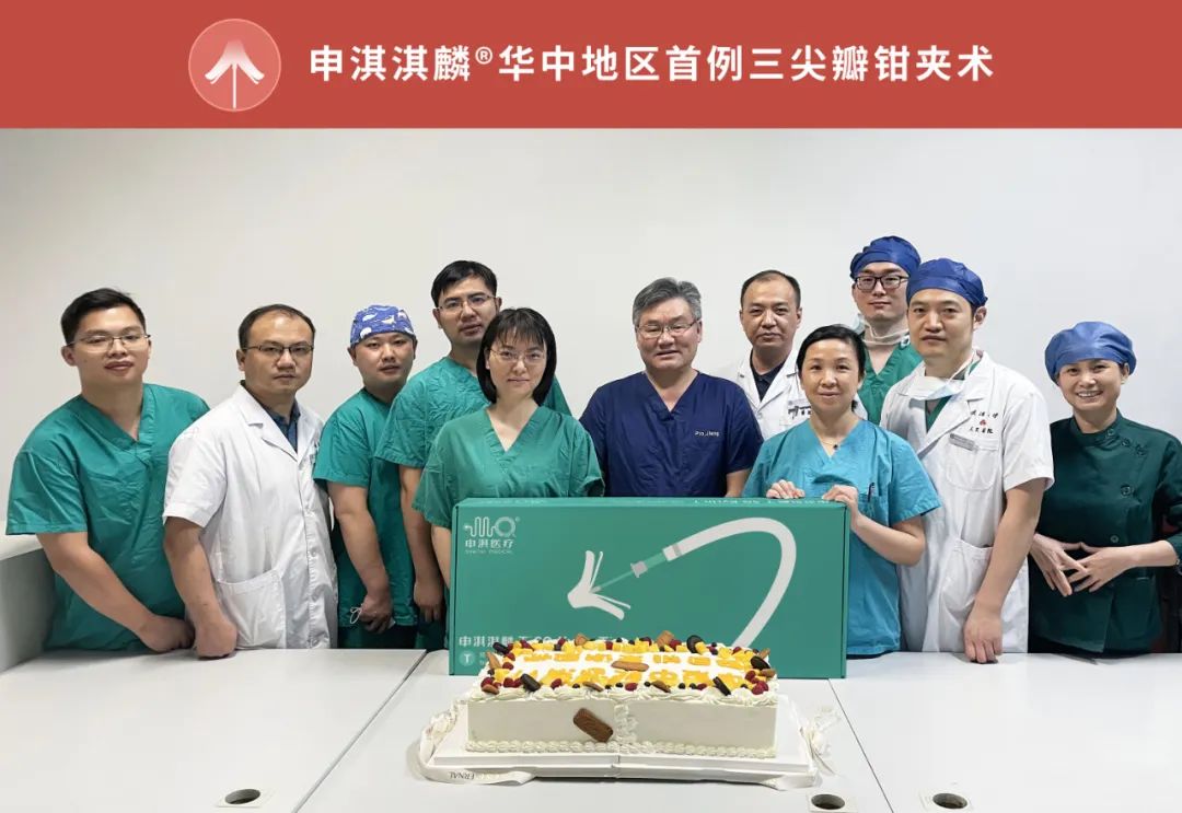 2022年9月初,武汉大学人民医院江洪教授、陈静教授、周青教授领衔的结构性心脏病团队,成功运用拥有自主知识产权的新一代申淇淇麟®经导管三尖瓣夹及可操控导引导管系统,为一位高危功能性三尖瓣反流患者成功实施了股静脉途径经导管三尖瓣缘对缘介入修复术。手术过程顺利,首次植入耗时仅2小时左右,患者术后恢复良好。此手术的顺利开展,标志着申淇淇麟®三尖瓣系统在华中地区完成了首例植入。