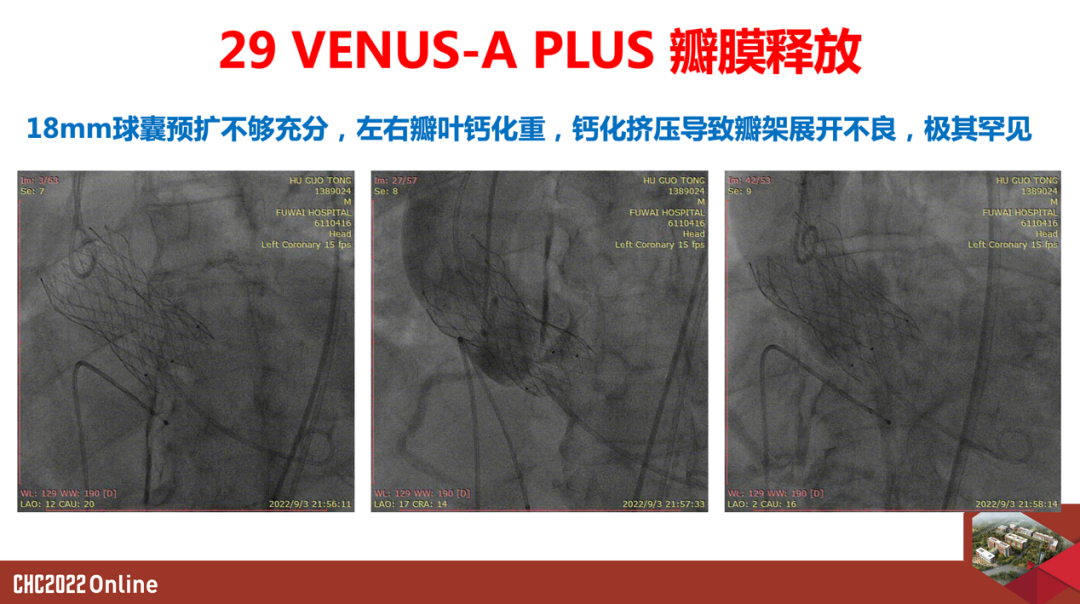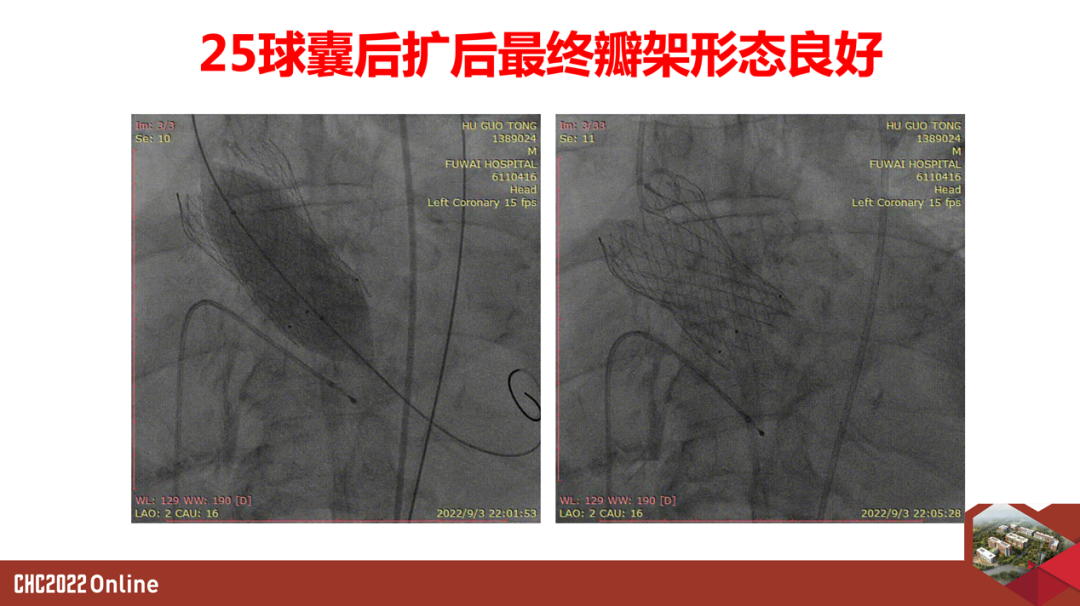 病例特点6:瓣叶钙化极其重,瓣架花冠展开受阻,大球囊后扩张解决