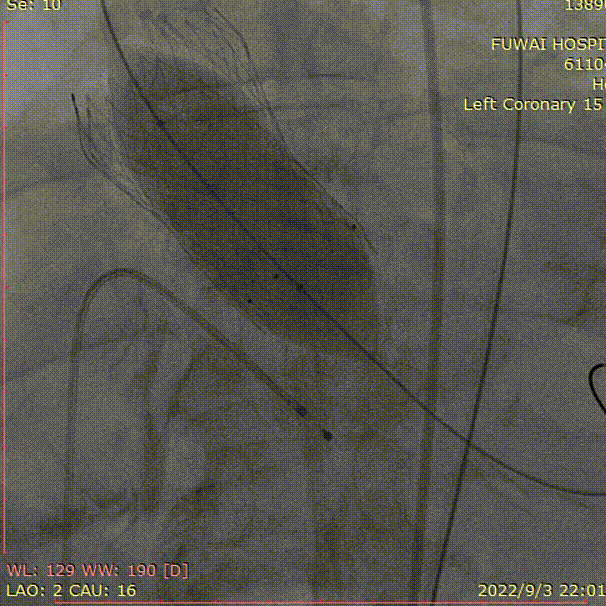 2022年9月3日晚,中国医学科学院阜外医院吴永健教授团队在导管室、CT室、麻醉科、超声科、体外循环和心外科的协作下,急诊TAVR抢救一位急性心肌梗死合并心源性休克伴主动脉瓣中重度狭窄患者。
