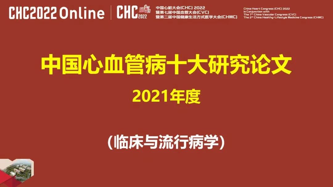 在中国心脏大会(CHC)的全体会议上,首都医科大学附属北京安贞医院马长生教授公布了2021年度中国心血管病临床与流行病学方面的十大研究论文。