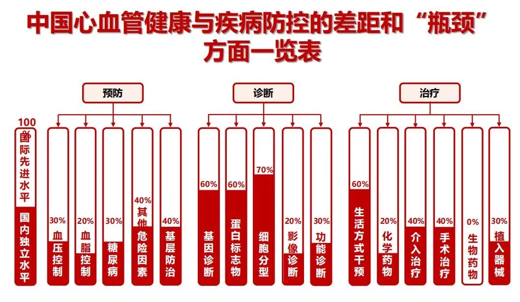 胡院士总结,中国心血管医学研究要着眼于在预防、诊断、治疗与世界先进水平的差距,从五大方面来补短板,解决瓶颈问题和卡脖子问题。
