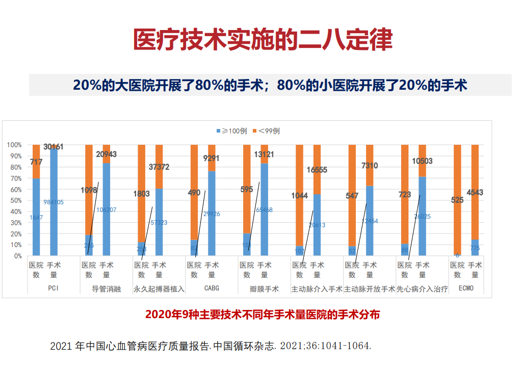 胡盛寿院士指出,医疗技术实施存在“二八定律”,即20%的大医院开展了80%的手术,80%的小医院开展了20%的手术,优质资源下沉仍任重道远,需要切实采取针对性措施,提高基层医院的诊疗能力和医疗质量。