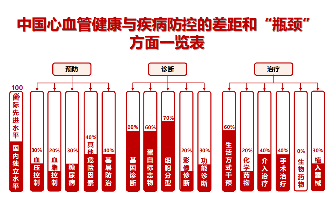 胡盛寿院士总结,中国心血管医学研究要着眼于在预防、诊断、治疗与世界先进水平的差距,从五大方面来补短板,解决瓶颈问题和卡脖子问题。