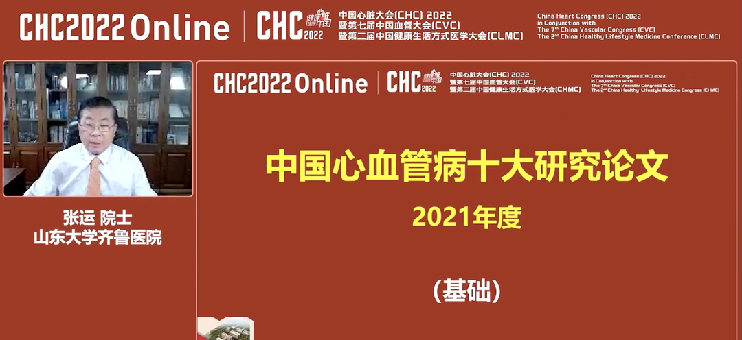 山东大学齐鲁医院张运院士发布2021年中国心血管病十大研究论文(基础研究)