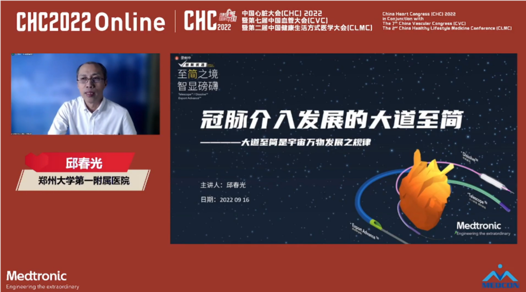 2022年9月16日,中国心脏大会(CHC)2022期间,美敦力“至简之境”简化冠脉治疗解决方案学术论坛再次出发,多位国内知名专家相聚线上,共同探讨“至简”在冠脉介入发展历程中的具体体现和应用价值。