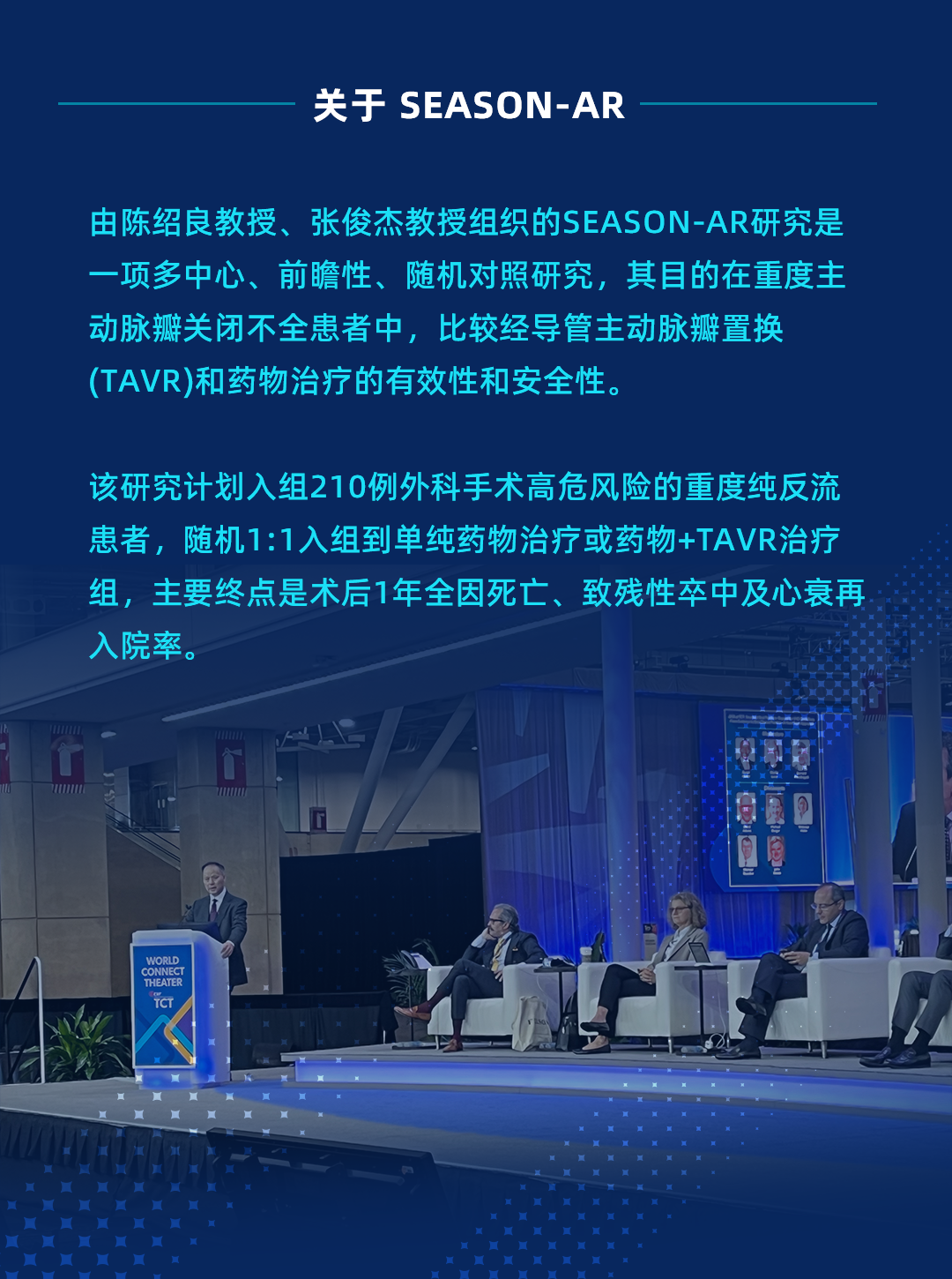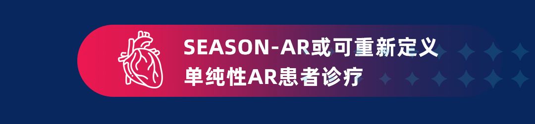 SEASON-AR的多中心、随机对照研究目前正在进行中,该研究将纳入210例外科高危的重度主闭患者,1:1随机分配至药物治疗组或TAVR治疗+药物治疗组,所有患者均接受指南推荐的药物治疗。研究主要终点为术后12个月的全因死亡、致残性卒中及心衰再住院。