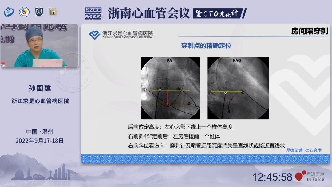 穿刺点的精确定位、封堵器选型、不同形状左心耳的封堵技巧、封堵效果评估是LAAC顺利完成的关键所在,孙国建教授通过理论结合实际病例的方式,分别对上述要点进行了详细阐述。他特别强调房间隔穿刺尽可能选择偏下偏后位置,良好的轴向是成功的一半。常用造影角度无法看清心耳时,可调整DSA机位将心耳开口与远端暴露清楚。LAmbre封堵器造影后选型很重要,针对不同类型心耳特点选择合适封堵器可以提高手术成功率。