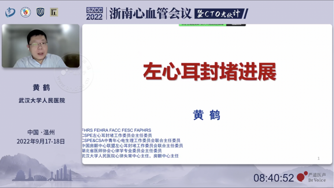 黄鹤教授在致辞中对于再次受邀参加瓯岳论道表示感谢,这次左心耳封堵论坛邀请了国内左心耳封堵领域的半壁江山亲临指导,充分表明了瓯岳论道极高的学术气氛和学术质量,并代表中华医学会心电生理和起搏分会左心耳封堵工作委员会预祝大会圆满成功。