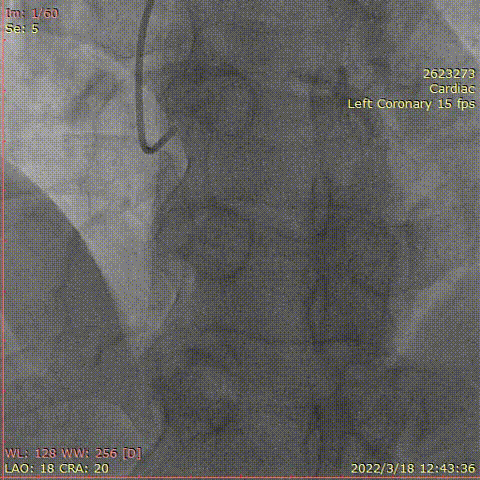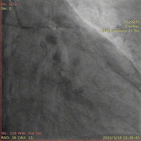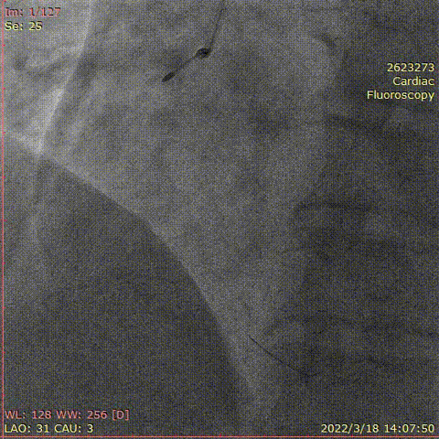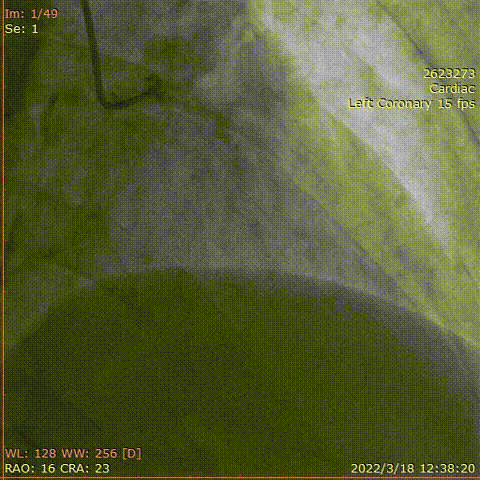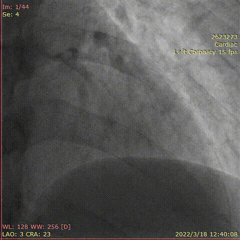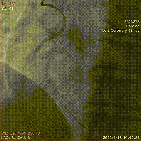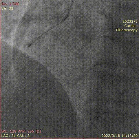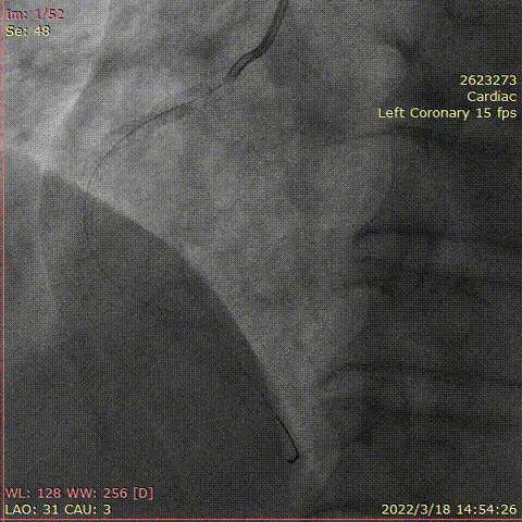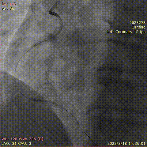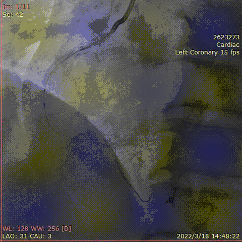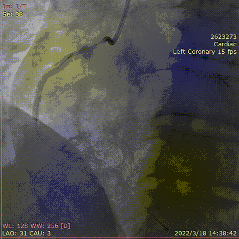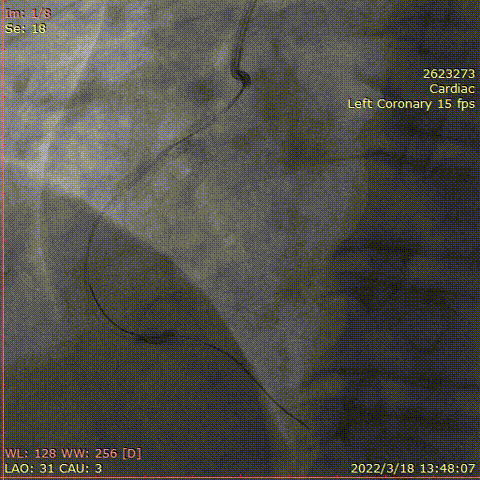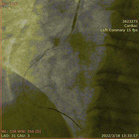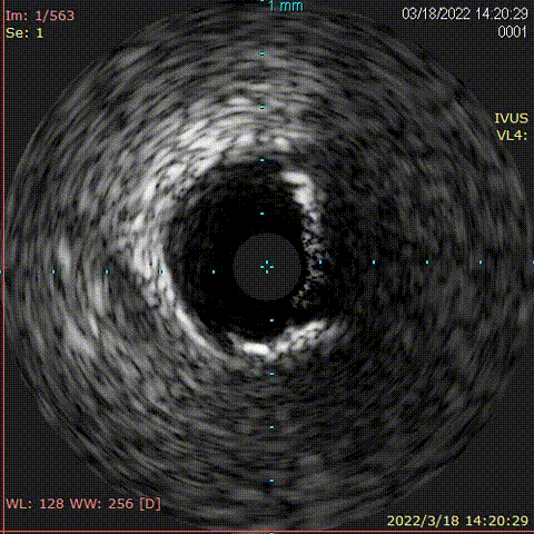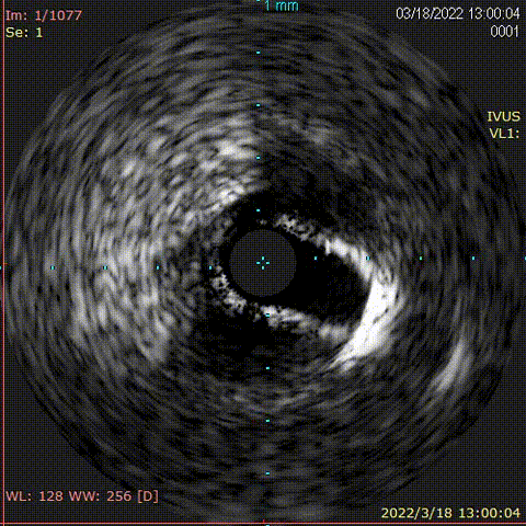 对前降支行IVUS,钙化较重,超声导管通过困难