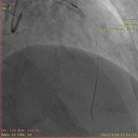 对右冠脉行介入治疗,右冠脉中段预扩张后超声导管仍通过困难