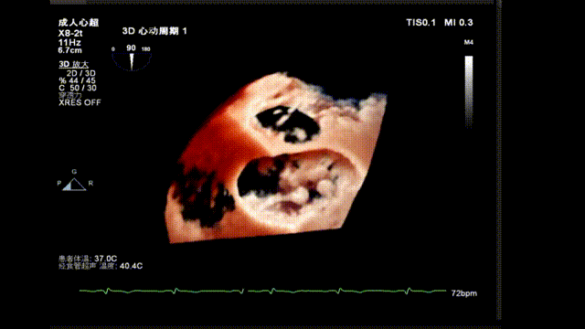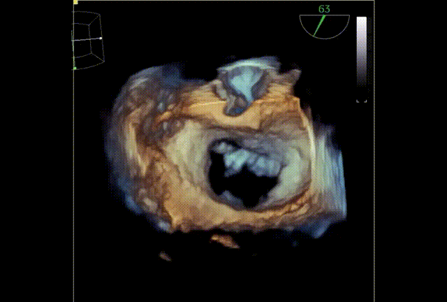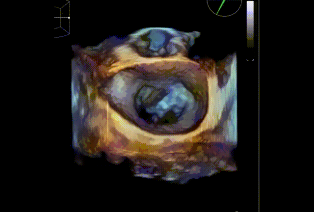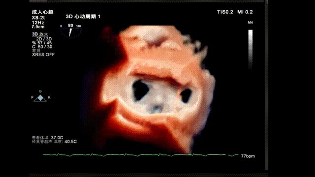 术前TEE显示重度二尖瓣反流,确认二尖瓣后瓣(P2)脱垂