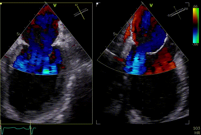 术后TEE显示二尖瓣双孔化形成,瓣膜夹稳定