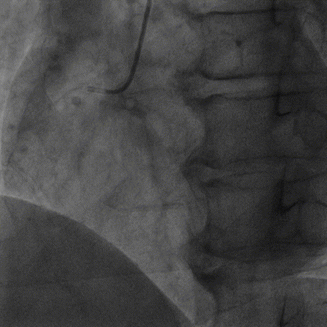 进行手术演示的患者为68岁男性,以“反复胸闷2月”入院,1月余前于外院行LCX-PCI。此次入院冠脉造影示LAD近中段弥漫性狭窄40-60%,中远段弥漫性狭窄70-80%;LCX原支架通畅;RCA近中段弥漫性狭窄80-85%。考虑到RCA狭窄程度更为严重,管腔更小,因此术者决定先对RCA进行干预。