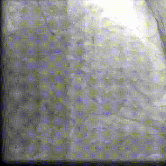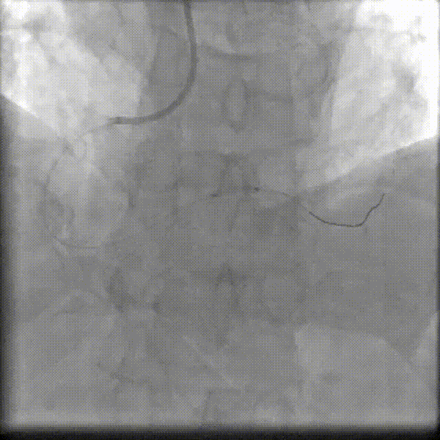 在 guidezilla 辅助下于前降支植2.75*36mm支架(8-12atm10s*2),3.5*10mm及3.0*10mm球囊后扩支架(12-18atm10se cond *6) 。