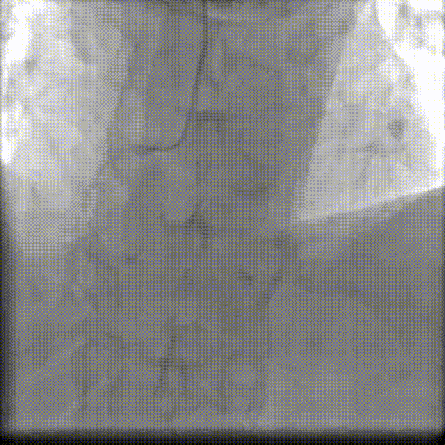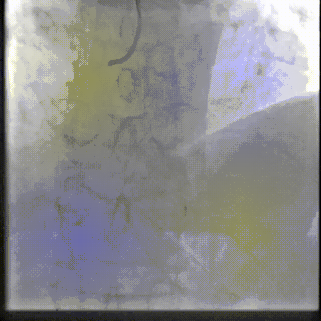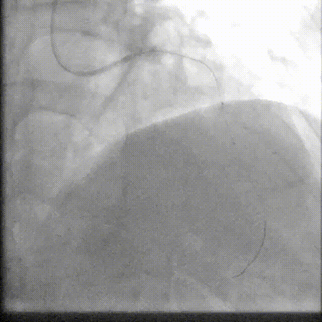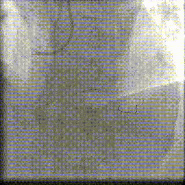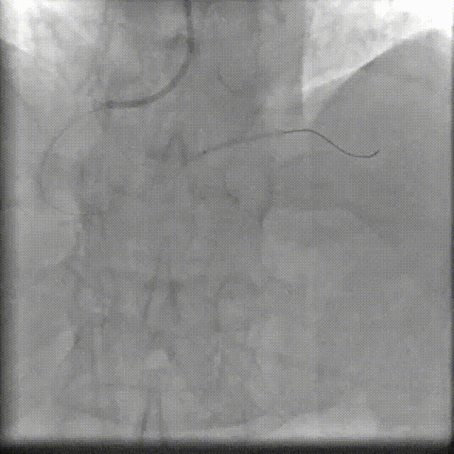 再行右冠 PCI 术,送 SAL .75指引导管进入右冠口。