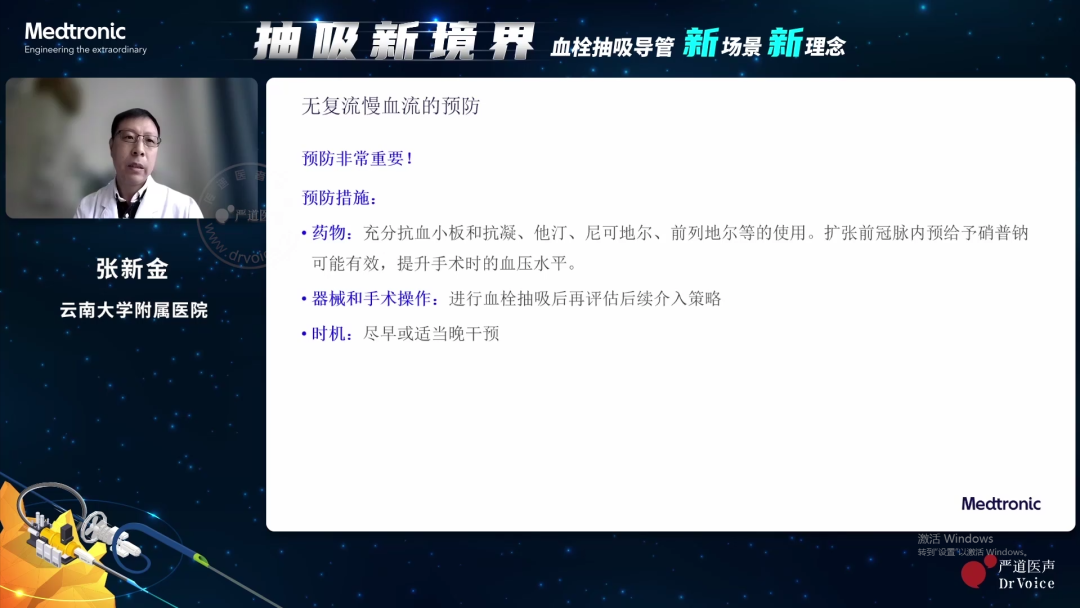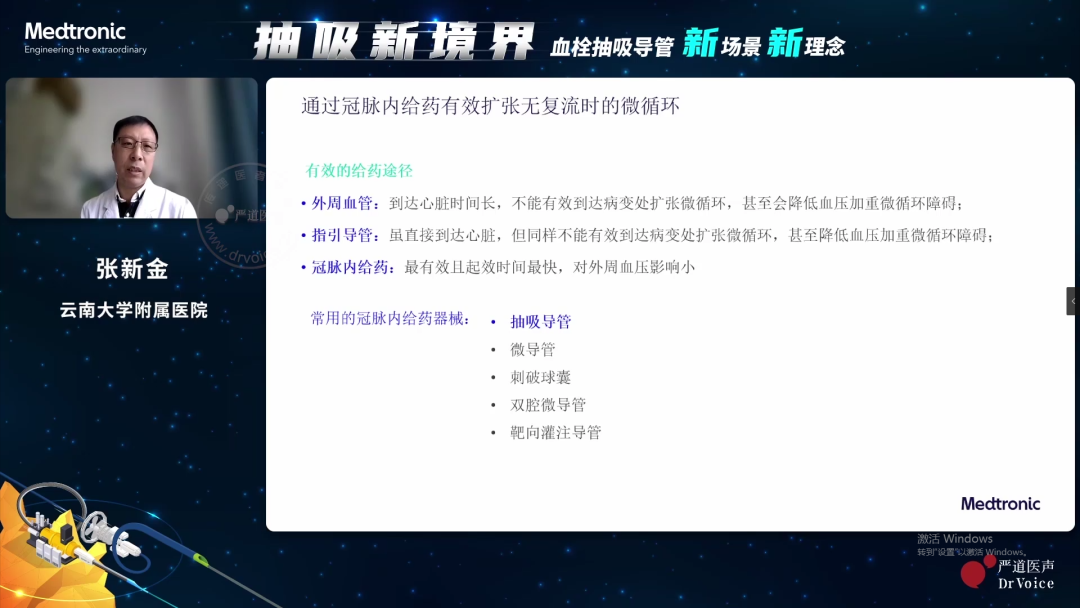 第三期嘉宾,特邀云南大学附属医院张新金教授分享有关抽吸导管行冠脉内给药治疗无复流及慢血流的策略与方法。