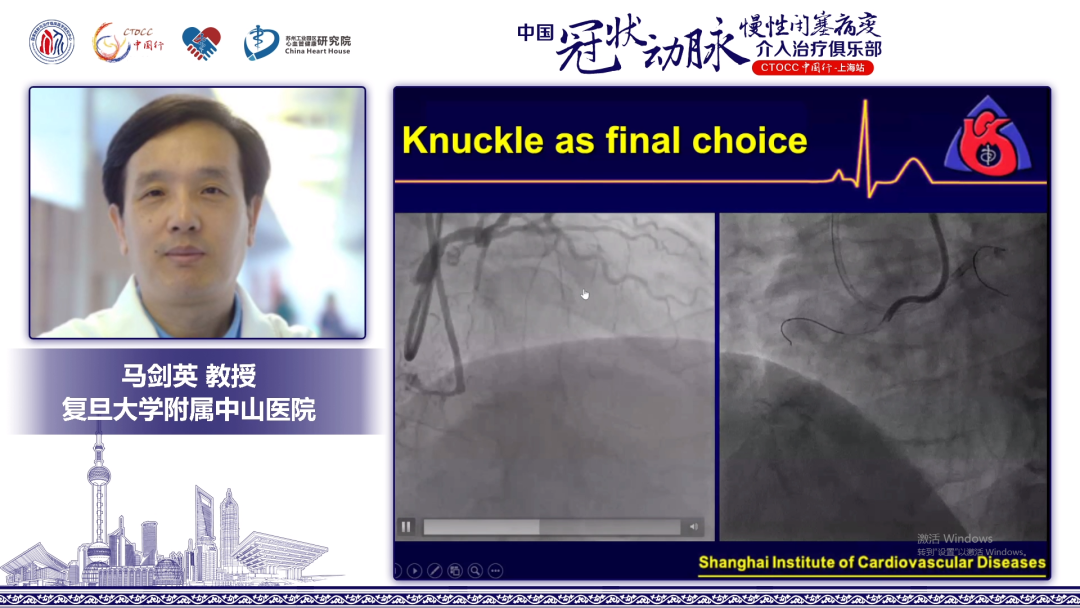 马剑英教授结合病例分享了Knuckle导丝技术在CTO中应用及技巧。Knuckle导丝适用于三种情况:分支较多时;支架释放后尚未后扩张,导丝不小心带出时;CTO病变开通,尤其是支架内闭塞时。Knuckle导丝如何构建和操作:导丝Knuckle必须在通过病变后进行;导丝末端塑形尽可能大;快速前送并旋转;一旦遭遇阻力前端便可卷曲;如微导管辅助,可将导丝直接塑形成U形弯。