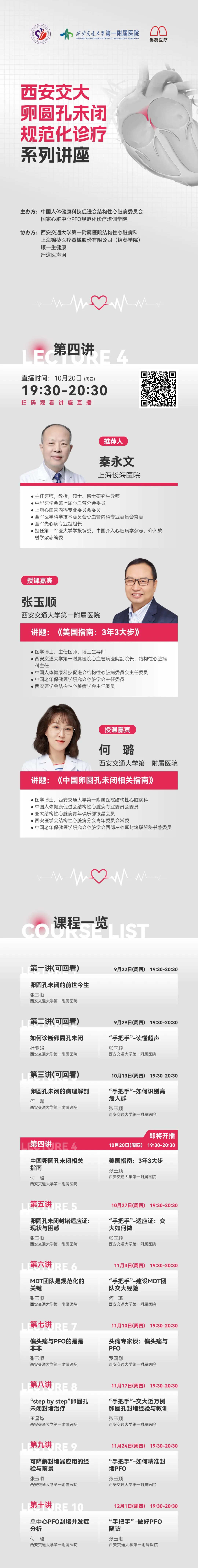 为规范中国PFO相关疾病的诊断和治疗,由中国人体健康科技促进会结构性心脏病专委会、国家心脏中心PFO规范化诊疗培训学院(西安)主办,西安交通大学第一附属医院结构性心脏病科、上海锦葵医疗、严道医声网、顺一生健康协办的《西安交大卵圆孔未闭规范化诊疗系列讲座》于9月22日、9月29日、10月13日线上开播,吸引了线上1.2万余人次观看,内容精彩有趣,好评如潮!