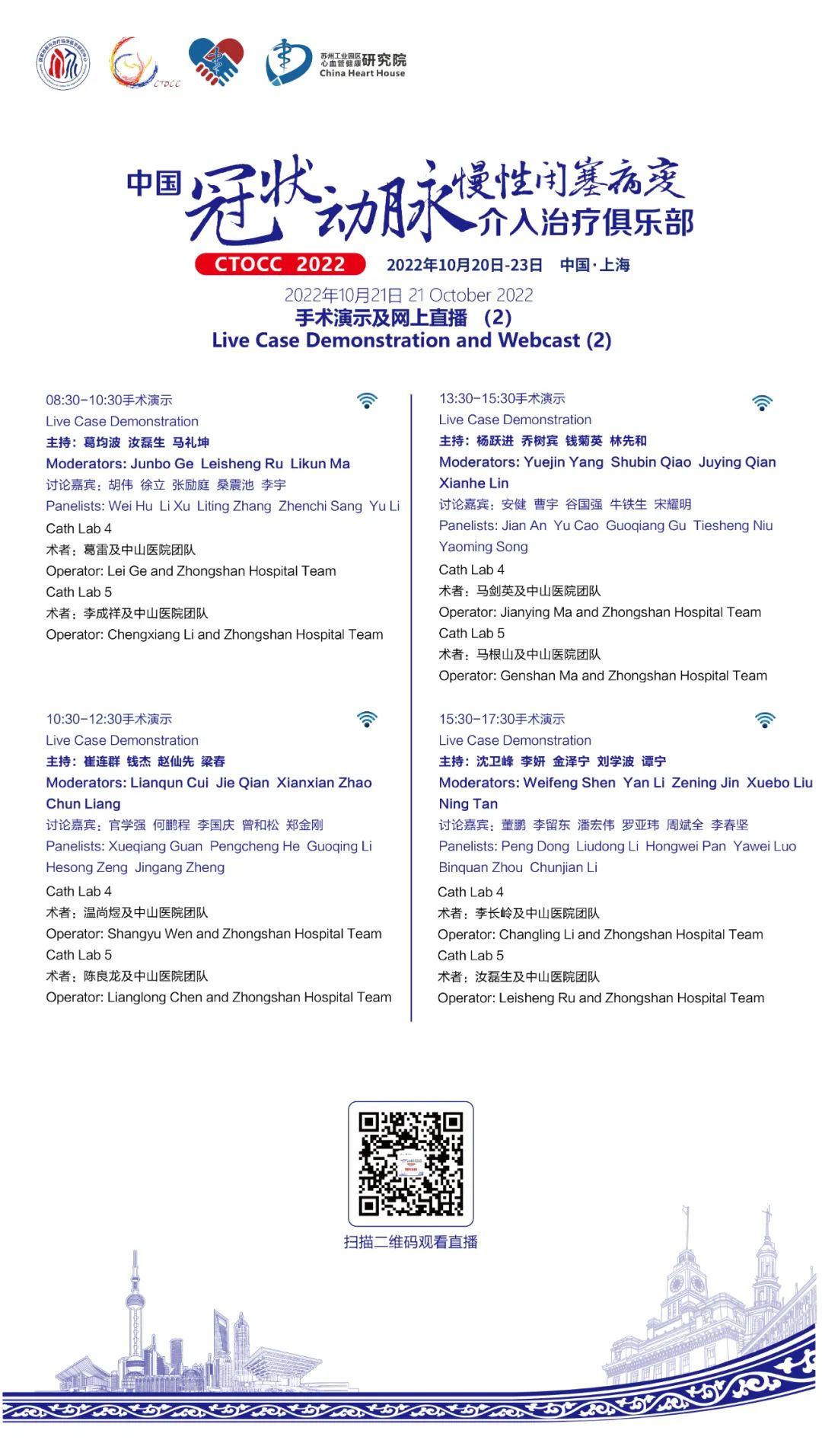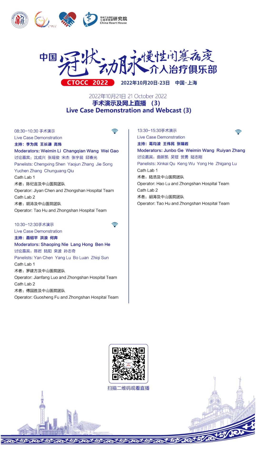CTOCC 2022 | 10月21日精彩预告:19台手术演示,3大会场同步直播!共同见证CTO-PCI的成长!