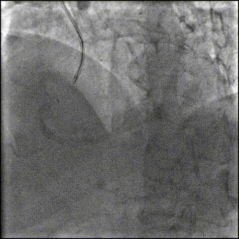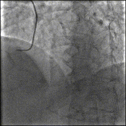 2.0x15mm, 2.5x12mm NC预扩张,球囊通过困难,改行旋磨术。