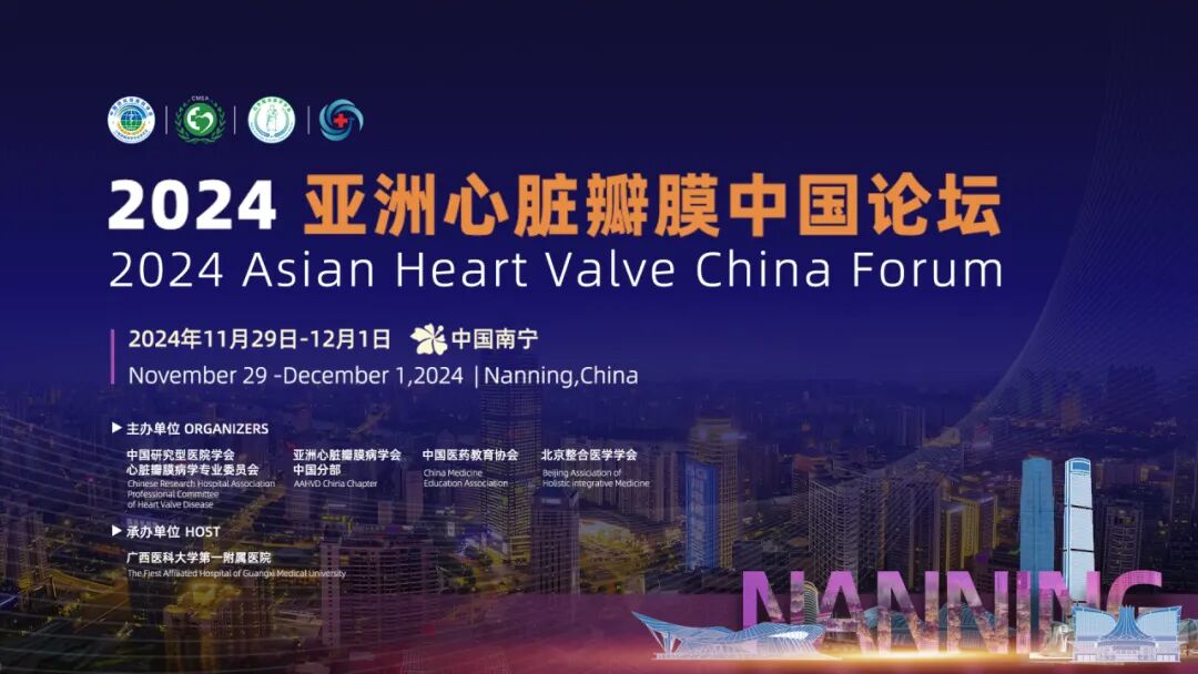 由中国研究型医院学会心脏瓣膜病学专业委员会、亚洲心脏瓣膜病学会(AAHVD) 中国分部、中国医药教育协会、北京整合医学会主办,广西医科大学附属第一医院承办的“2024亚洲心脏瓣膜中国论坛”拟定于2024年11月29日-12月1日在广西南宁荔园维景国际酒店线下隆重召开,并将于11月25日-29日开展为期一周的线上手术直播。