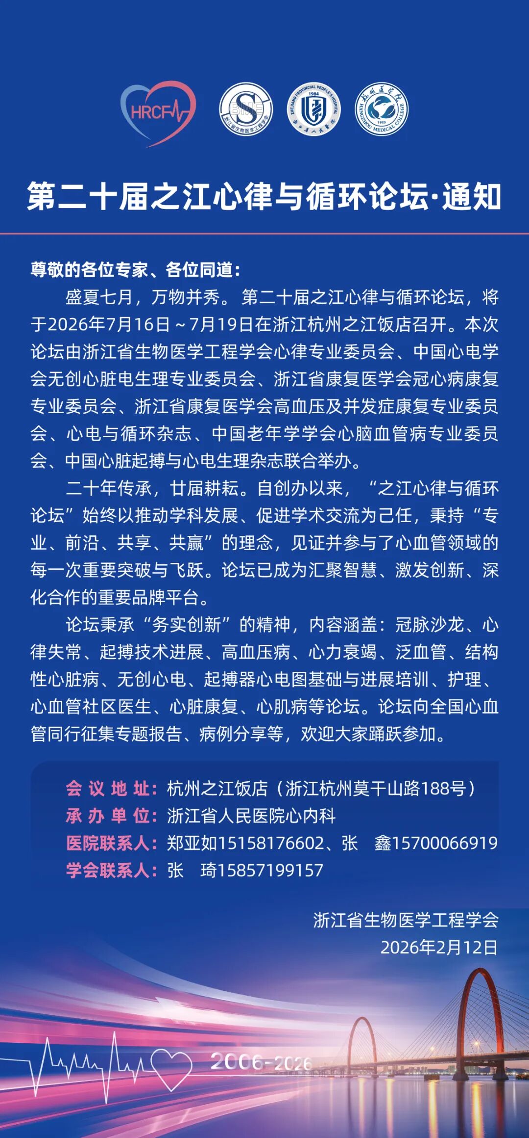 第二十届之江心律与循环论坛