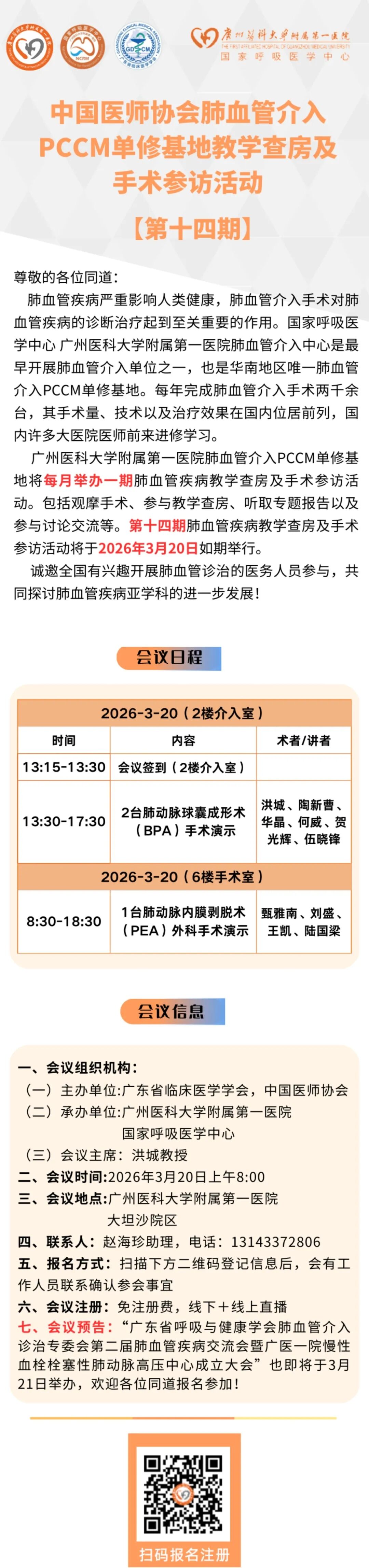 中国医师协会肺血管介入PCCM单修基地教学查房及手术参访活动【第十四期】