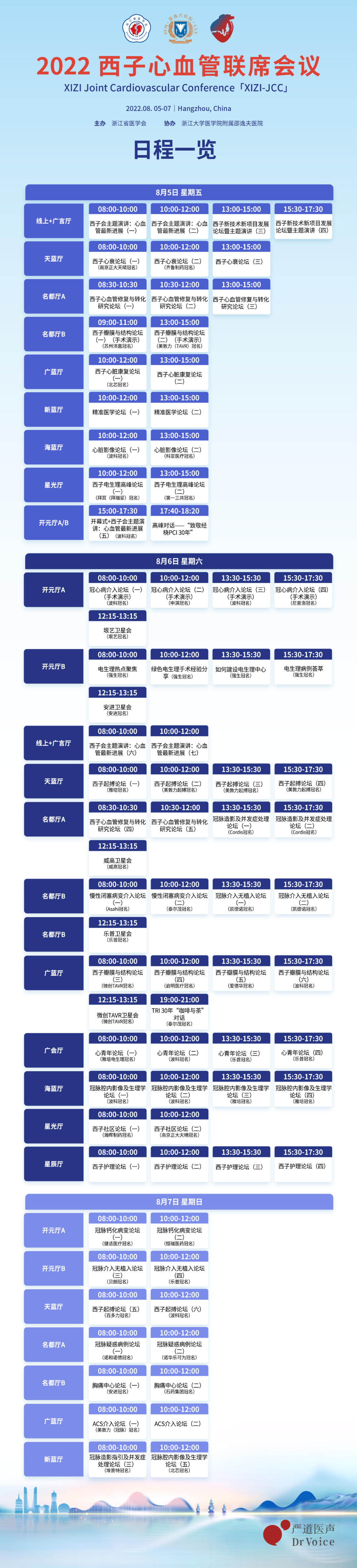 八月西湖满眼翠,风雨过后蓝澈天,《2022西子心血管联席会议(XIZI-JCC)》如约而至。大会将于2022年8月5日-7日于杭州浙江广电开元名都大酒店线下召开,会议全程由严道医声网进行同步线上直播。