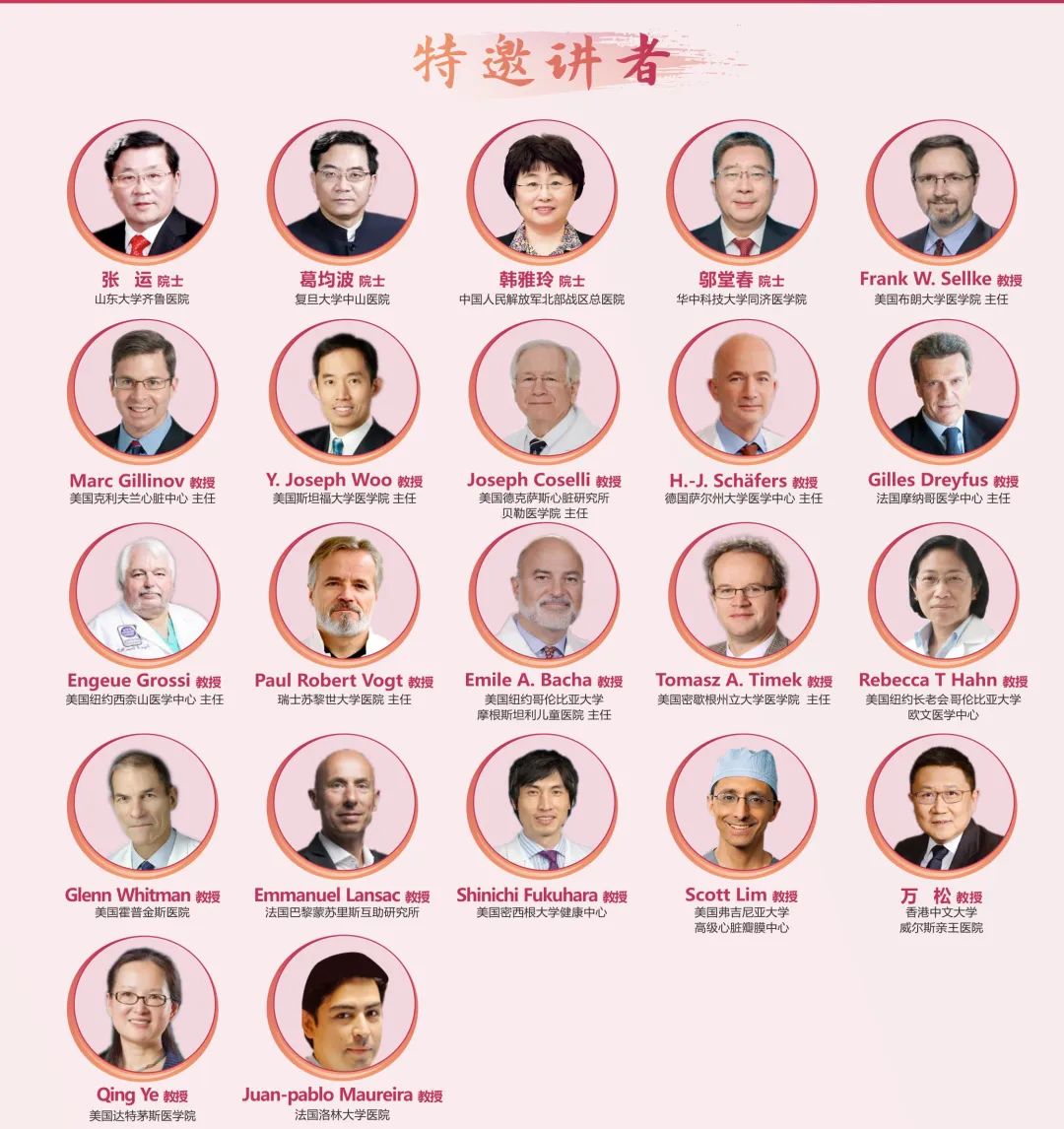届时将有胡盛寿院士、张运院士、葛均波院士、韩雅玲院士、邬堂春院士等100余位国内顶尖专家做专题汇报。同时邀请美国克利夫兰医学中心Marc Gillinov教授、美国布朗大学罗德岛医院Frank W. Sellkie教授、美国德克萨斯心脏中心Joseph Coselli教授、德国萨尔州大学医学中心H.-J. Schäfers教授、美国纽约哥伦比亚大学摩根斯坦利儿童医院Emile A. Bacha教授、美国纽约长老会/哥伦比亚大学医学中心Rebecca T Hahn教授、法国摩纳哥医学中心Gilles Dreyfus教授、美国纽约西奈山医学中心Ismail El-Hamamsy教授、瑞士苏黎世大学Paul Vogt教授、美国约翰霍普金斯医院Glenn Whitman教授等20余位国际大咖授课交流。