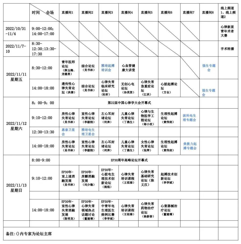 (10月31日—11月4日青年术者大赛,11月7-10日经典手术直播周,11月11-13日学术会议)