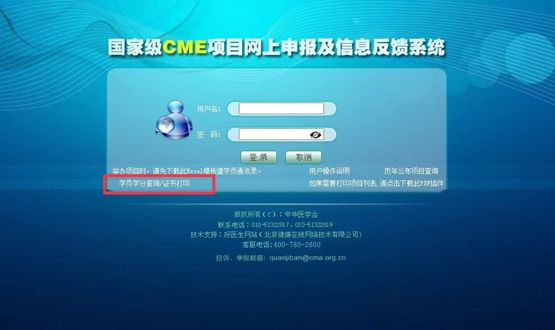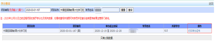 点击左下角“学员学分查询/证书打印”, 进入到查询页面。